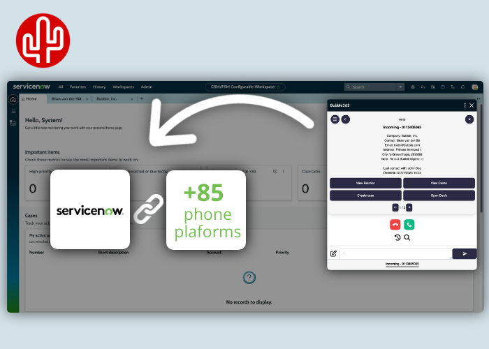 Good news for all ServiceNow users! Discover the next generation of integrations that let you manage all your customer interactions directly from your trusted CRM system. Our brand-new embedded integration for ServiceNow is now available and works seamlessly with more than 85 different telephony platforms. Experience the power of the integration tool Bubble — now fully integrated in ServiceNow.