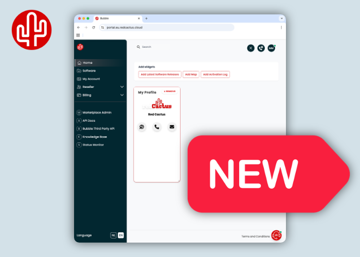 The homepage has undergone a major transformation. Until recently, it consisted of fixed content determined by us — but from now on, you decide what appears on your homepage, based on widgets. This applies to both Red Cactus partners and end users who log in.